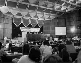 Wir werden durch den Metalldetektor geschleust. Gestern ist man ohne Kontrolle hereingekommen, obwohl Chávez da auch im Saal war. Die Sicherheitsregeln werden je nach Nachrichtenlage gehandhabt - wobei man darauf hinweisen muss, dass die rechte Opposition den Präsidenten wirklich mit allen Mitteln beseitigen will. Nachdem es mit dem Putsch vor einem Jahr und der Sabotage der Erdölindustrie zur Jahreswende nicht geklappt hat, würde ein Anschlag niemanden überraschen. Immerhin hält man Chávez in den Mittel- und Oberschichtsvierteln von Caracas nicht nur für einen Castro-Kommunisten, sondern sogar für den leibhaftigen Antichristen(1). |