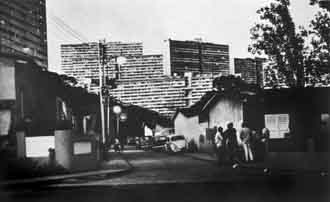 El 23 de Enero will form the background for our work. We will focus on its historic modernist housing architecture and selfmade housings in relation to the people and their conditions of living in both modes of housing. Using recent aerial images of 23 de Enero taken from a helicopter, ascii images will be reconstructed from the text of the Constitution of the 5th Bolivarian Republic of Venezuela -- a constitution devised through participatorey democracy by the people of Venezuela and ratified in 1999. A text with multiple meanings, printed as a small blue booklet and distributed all over the city. When discussing the political and social situation in Venezuela, it seems like everybody but the middle and ruling classes carry the new constitution in their pocket. |