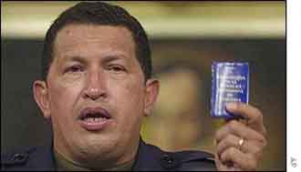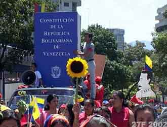 constitution 99 urban con-text Hugo Chaves Frias, the president (since 1998) of the 5th Bolivarian Republic of Venezuela is leading this social process and has quite often to argue using the small blue booklet, the Constitution de la Republica Bolivariana de VENEZUELA. Either to counter a coup attempt, or to argue for the restructuring of the state-owned oilproduction company PDVSA, or simply convincing people that participatory democracy is about their future and it is their right to work on that. Based on the new constitution and its unique process of making it (a countrywide participatory process), his government launched a series of laws for social reforms which brought class confrontations in the media and out in the streets. |